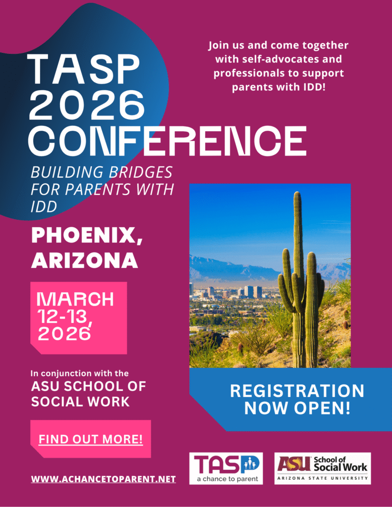 We invite proposals from researchers, practitioners, advocates, self-advocates, and community partners to participate in the TASP 2026 Conference: Building Bridges: Strengthening Community Connections and Advocacy for Parents with IDD, presented in conjunction with the Arizona State University School of Social Work.