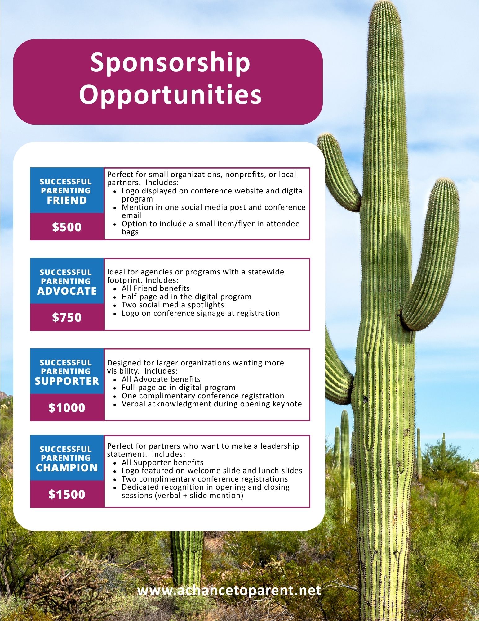 Registration information will be available on our website at www.achancetoparent.net beginning December 1, 2025. - Do you have sponsorship or vendor opportunities available?